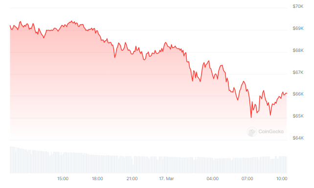 격동의 사태 속에서 비트코인 가격의 급격한 하락으로 암호화폐 시장이 흔들리고 있습니다. 오랜 기간 동안 주목할만한 상승과 최고 기록을 달성한 후 비트코인은 주간 최저치인 65,000달러로 떨어졌으며 이는 투자자들에게 큰 좌절을 안겨주었습니다.