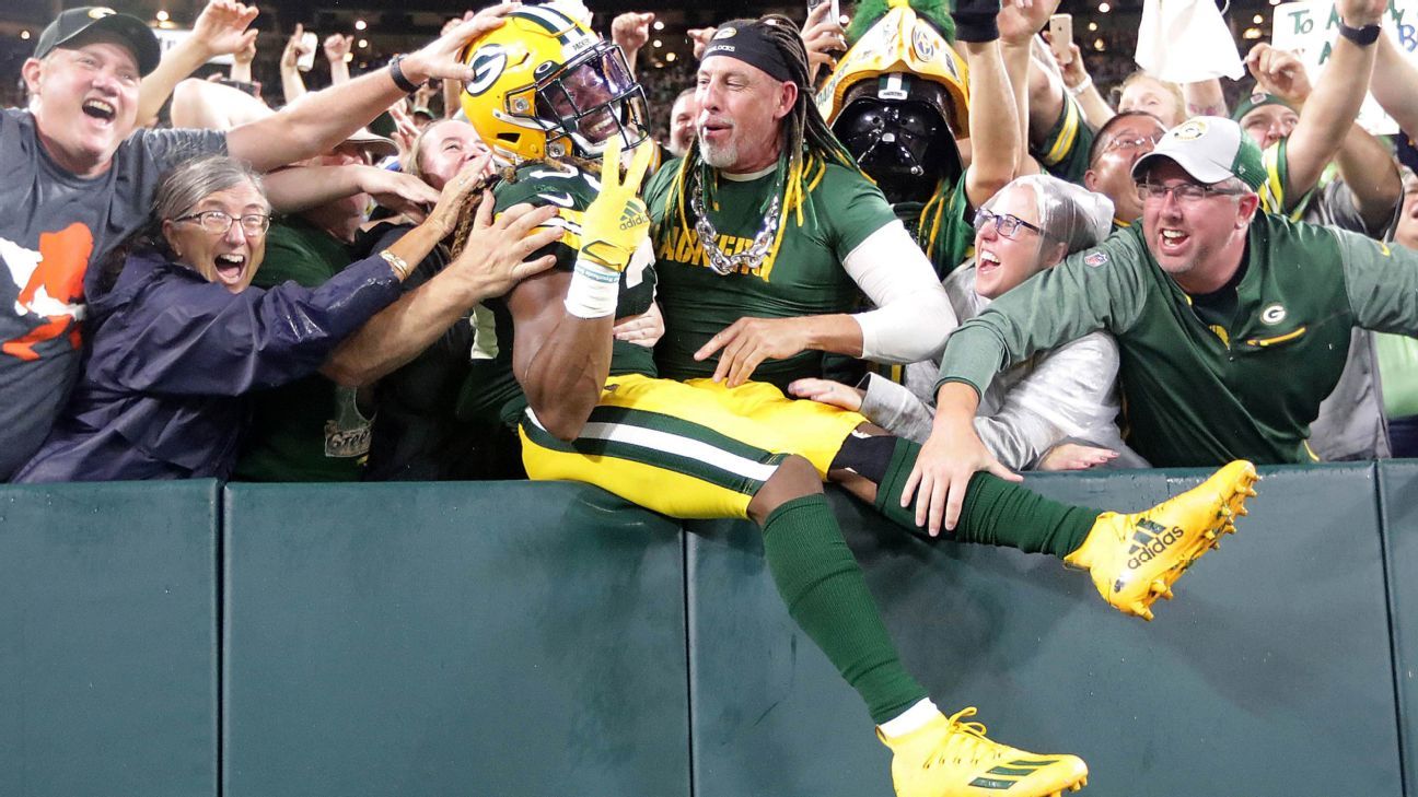 Green Bay Packers의 Aaron Jones는 4-TD 공연 중 아버지의 유골이 담긴 목걸이를 잃어 버렸습니다.